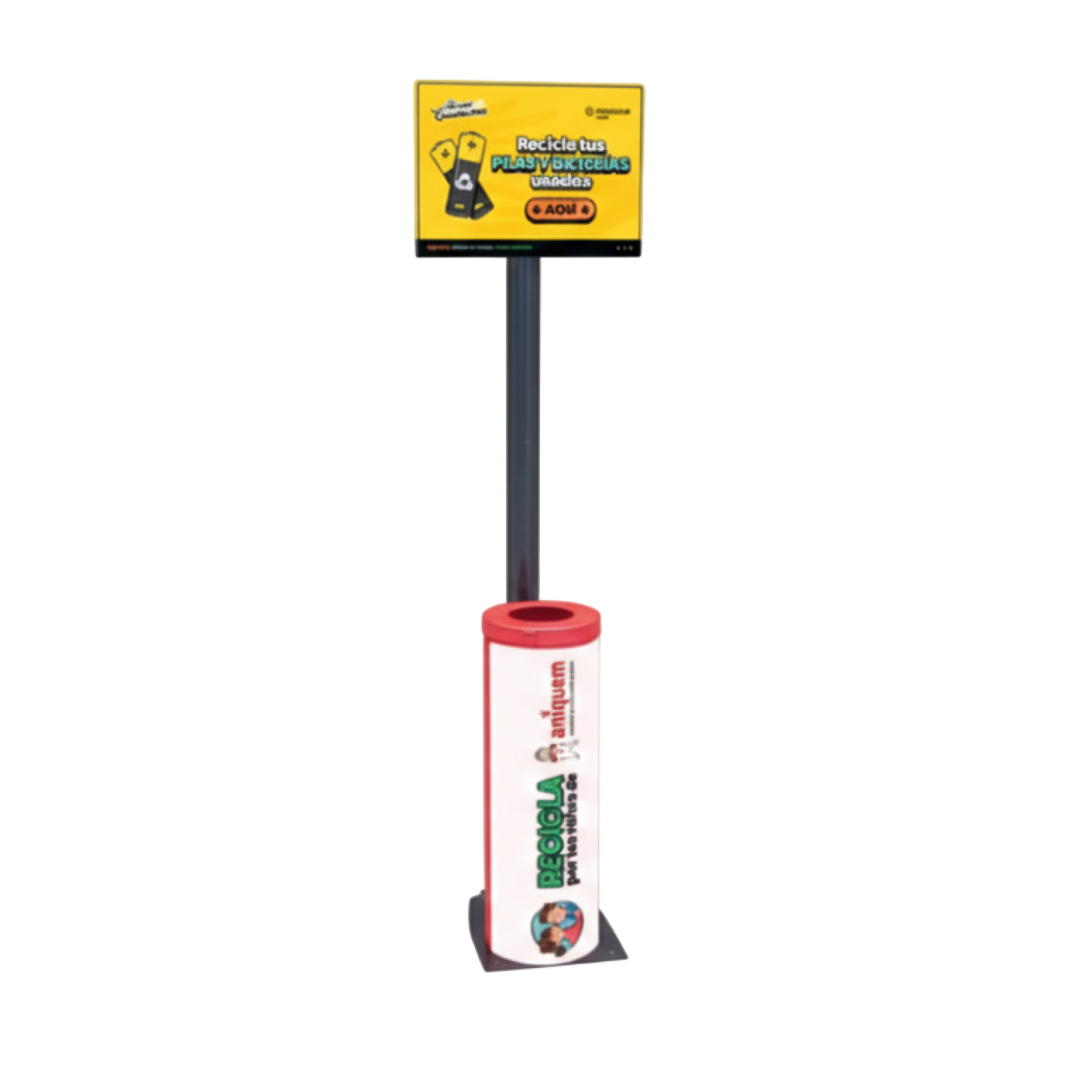 El recopilador de pilas con panel informativo está diseñado para la recolección segura y diferenciada de pilas usadas, consideradas residuos peligrosos por su contenido químico. Es una solución ideal para municipalidades, instituciones educativas, empresas, centros comerciales y campañas ambientales, donde se requiere un punto visible, seguro y educativo para la correcta disposición de este tipo de residuos.