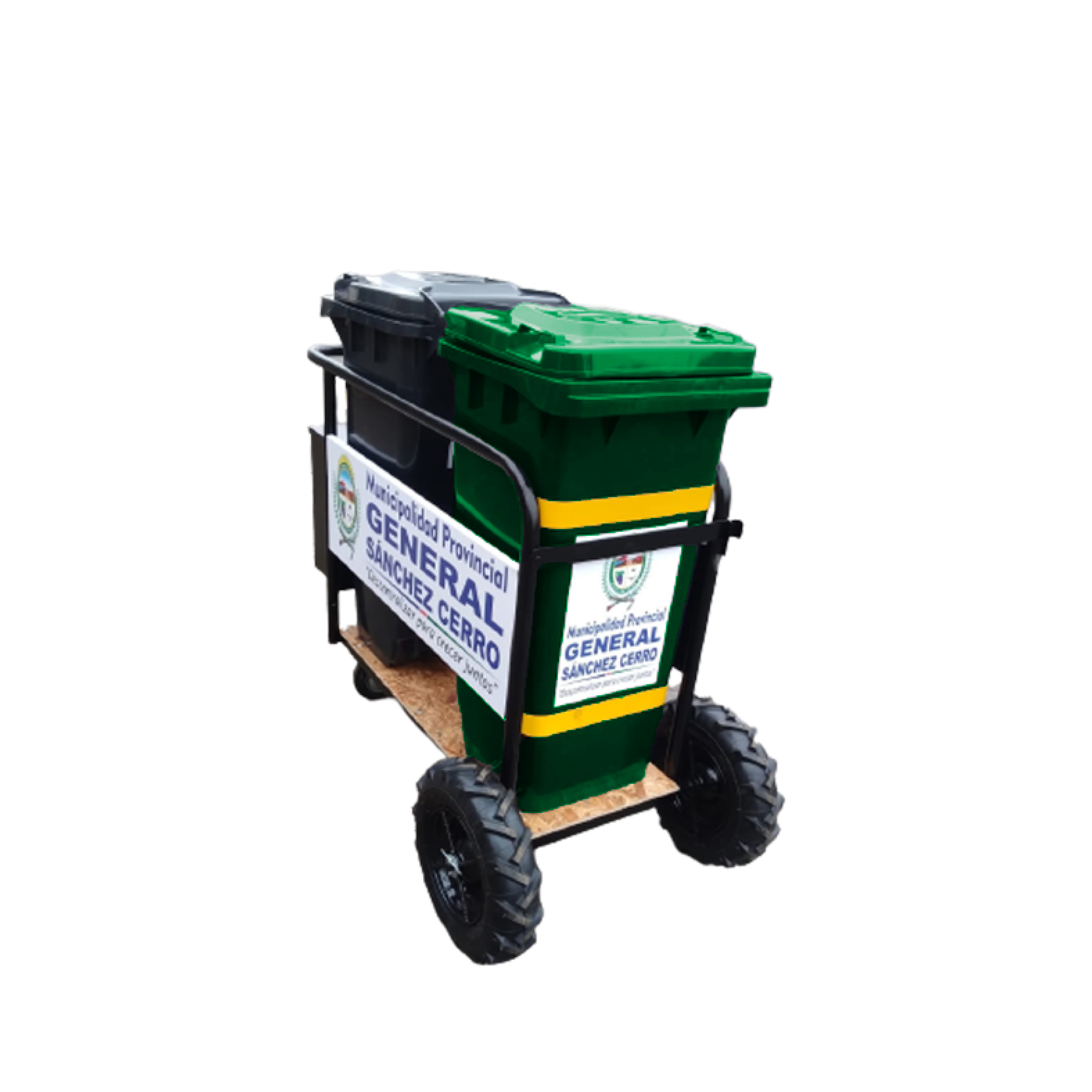 El coche de barrido con dos contenedores de 120 litros es una solución integral para la recolección, segregación y transporte de residuos sólidos durante las labores de limpieza urbana. Está diseñado para optimizar el trabajo del personal operativo en calles, parques, plazas, avenidas, mercados y espacios públicos, mejorando la eficiencia, seguridad y orden en la gestión de residuos. Los contenedores de 120 litros están fabricados en polietileno de alta densidad (PEAD) 100 % virgen, con aditivo anti UV, lo que garantiza alta resistencia a impactos, radiación solar y uso intensivo en exteriores. Todas las partes metálicas se encuentran galvanizadas, asegurando protección contra la corrosión y una mayor vida útil. El sistema de ruedas reforzadas facilita el desplazamiento incluso en superficies irregulares.