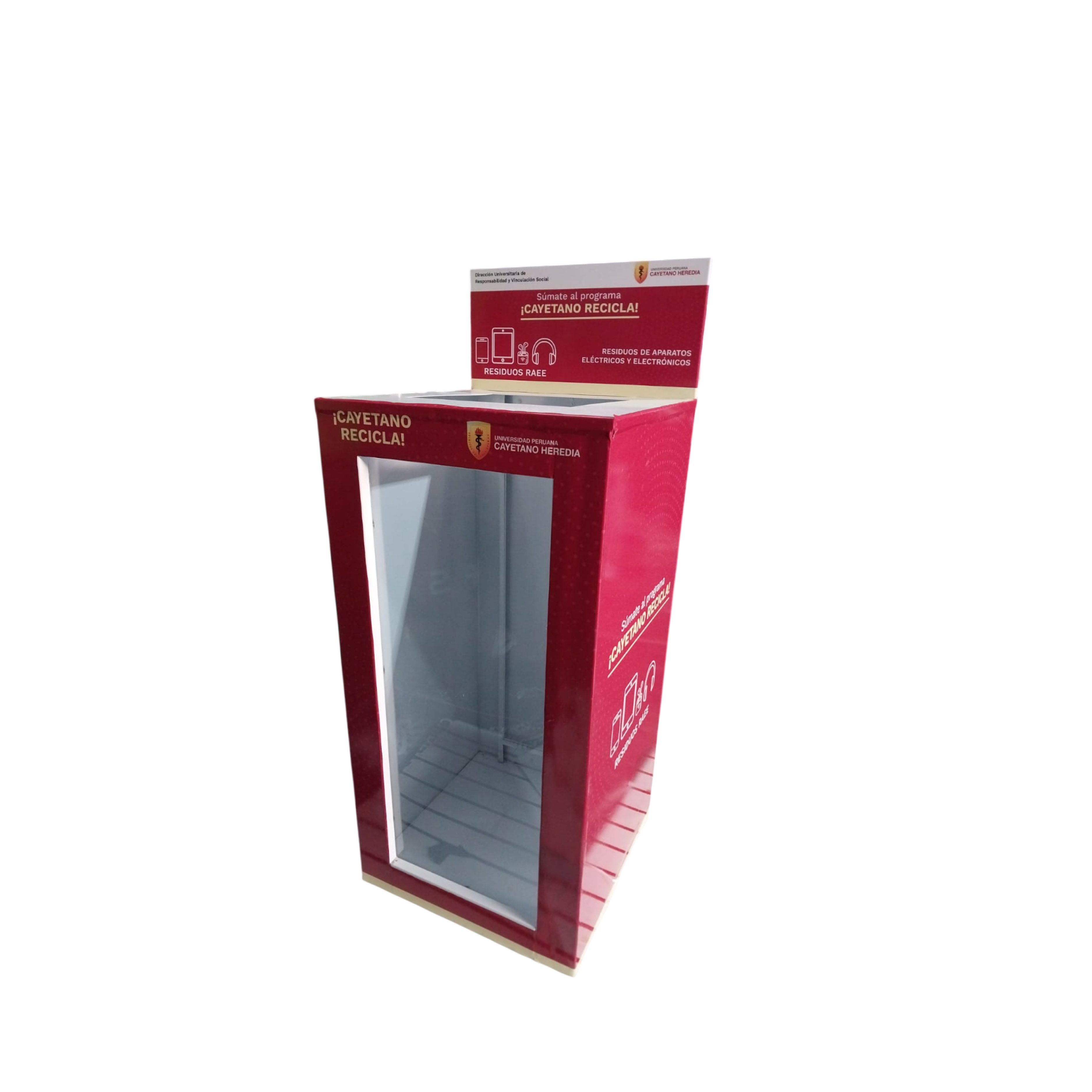 El contenedor para RAEE de 1 compartimento está diseñado para la recolección, almacenamiento temporal y controlado de Residuos de Aparatos Eléctricos y Electrónicos (RAEE), tales como celulares, cables, cargadores, pequeños electrodomésticos y dispositivos electrónicos en desuso. Es ideal para instituciones educativas, empresas, oficinas, municipalidades y campañas de reciclaje tecnológico, donde se requiere una gestión segura y ordenada de este tipo de residuos especiales. Fabricado en estructura metálica de alta resistencia, el contenedor cuenta con un acabado de pintura en polvo electrostático al horno, que le otorga una excelente protección frente a la corrosión, el desgaste y el uso continuo en interiores o exteriores techados. Su acabado de alta calidad con tacto cuero brinda una presentación profesional, ideal para espacios institucionales.